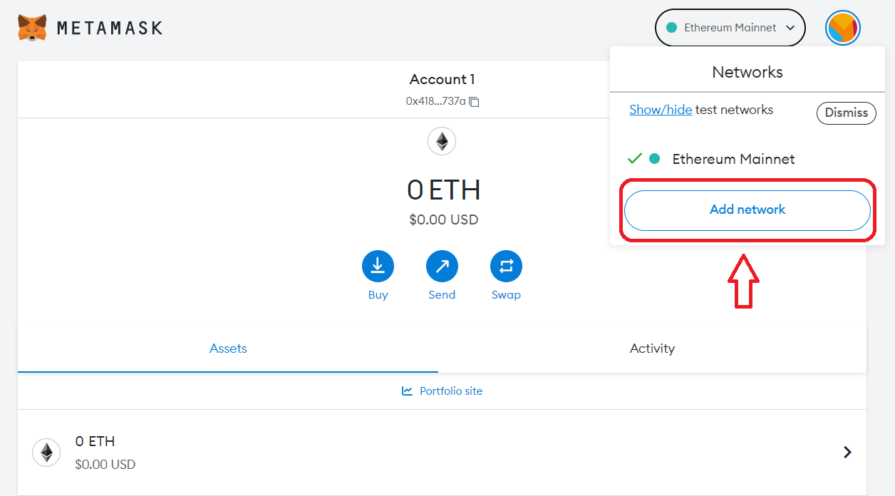 步骤 2:有 2 种方法将 Avalanche 网络添加到 MetaMask。