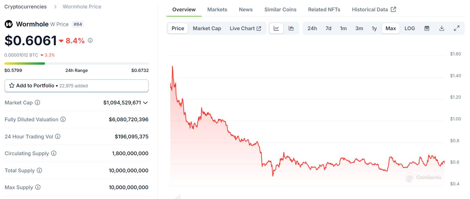 2024 年 5 月 1 日下午 01:00 虫洞 (W) 价格图表。来源:CoinGecko