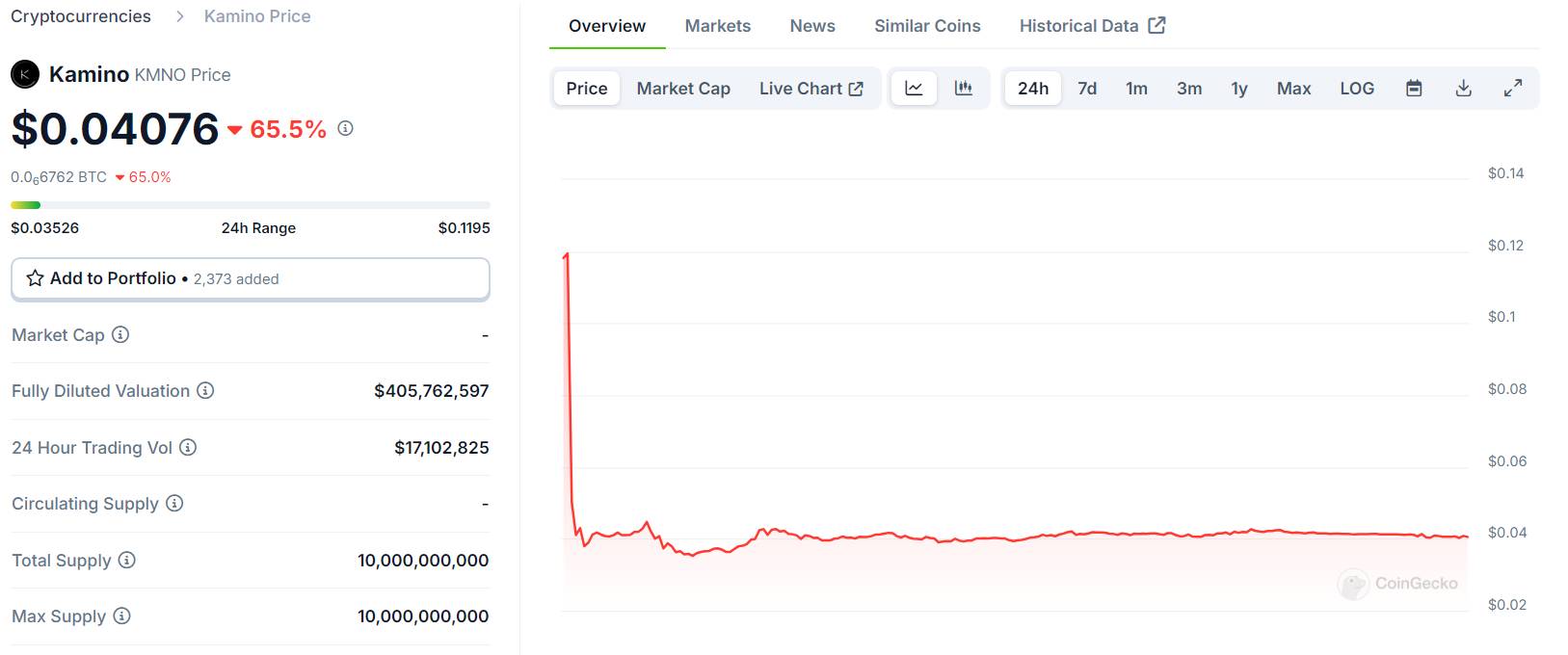 卡米诺 (KMNO) 价格图表于 2024 年 5 月 1 日下午 01:00。来源:CoinGecko