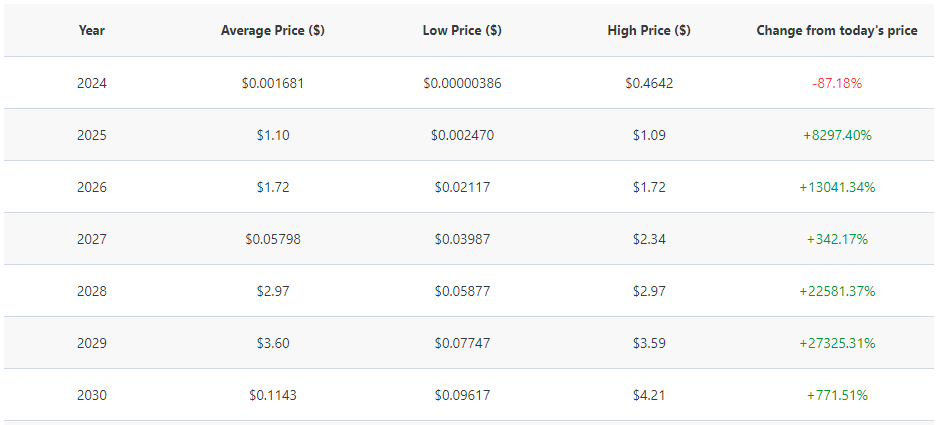 根据我们的计算,BOME 币的价格可能在 2024 年达到 1 美元。请注意,这些都是投机预测,不应被视为投资建议。由于影响加密货币市场的各种因素,BOME Coin 的实际价格可能会有很大差异。