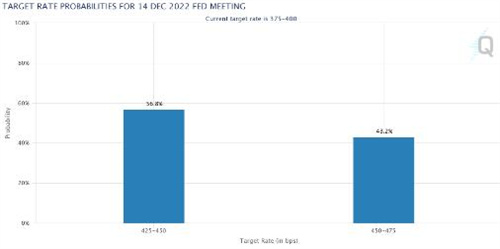 根据芝商所的 FedWatch 工具,12 月的联邦公开市场委员会 (FOMC) 目前预计将加息 50 个基点,而不是 75 个基点。