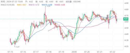 7月21日的交易表现中,开盘价为4.4754美元,随后价格攀升至当日**价4.7333美元,但也在日内触及了**价4.4754美元,**以4.6938美元收盘。该日24小时交易额达到了8.32亿美元,市值则稳定在26.29亿美元。