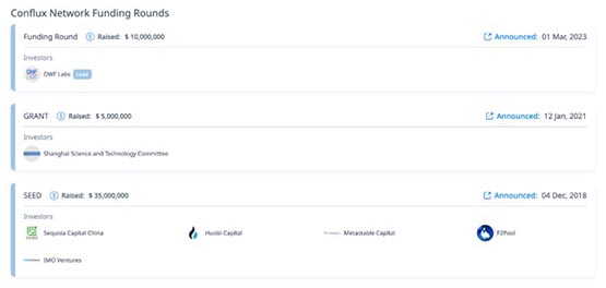 在今年3月初,Conflux通过**销售完成1000万美元融资,由DWFLabs全额投资,这笔投资将帮助Conflux扩展技术、并扩大用户群体,在DWF Labs注资之后,Conflux迄今为止的总融资额突破5000万美元。