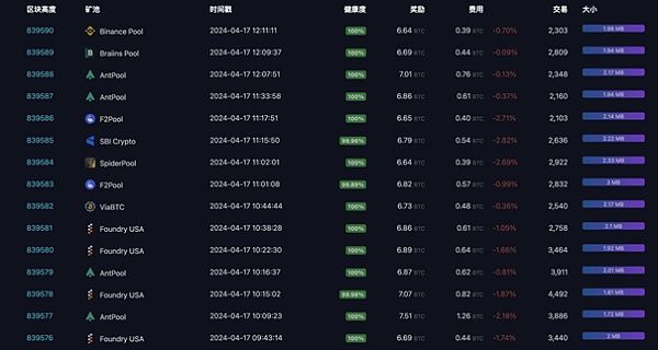 (图1:近期比特币网络出块及奖励情况,Mempool)