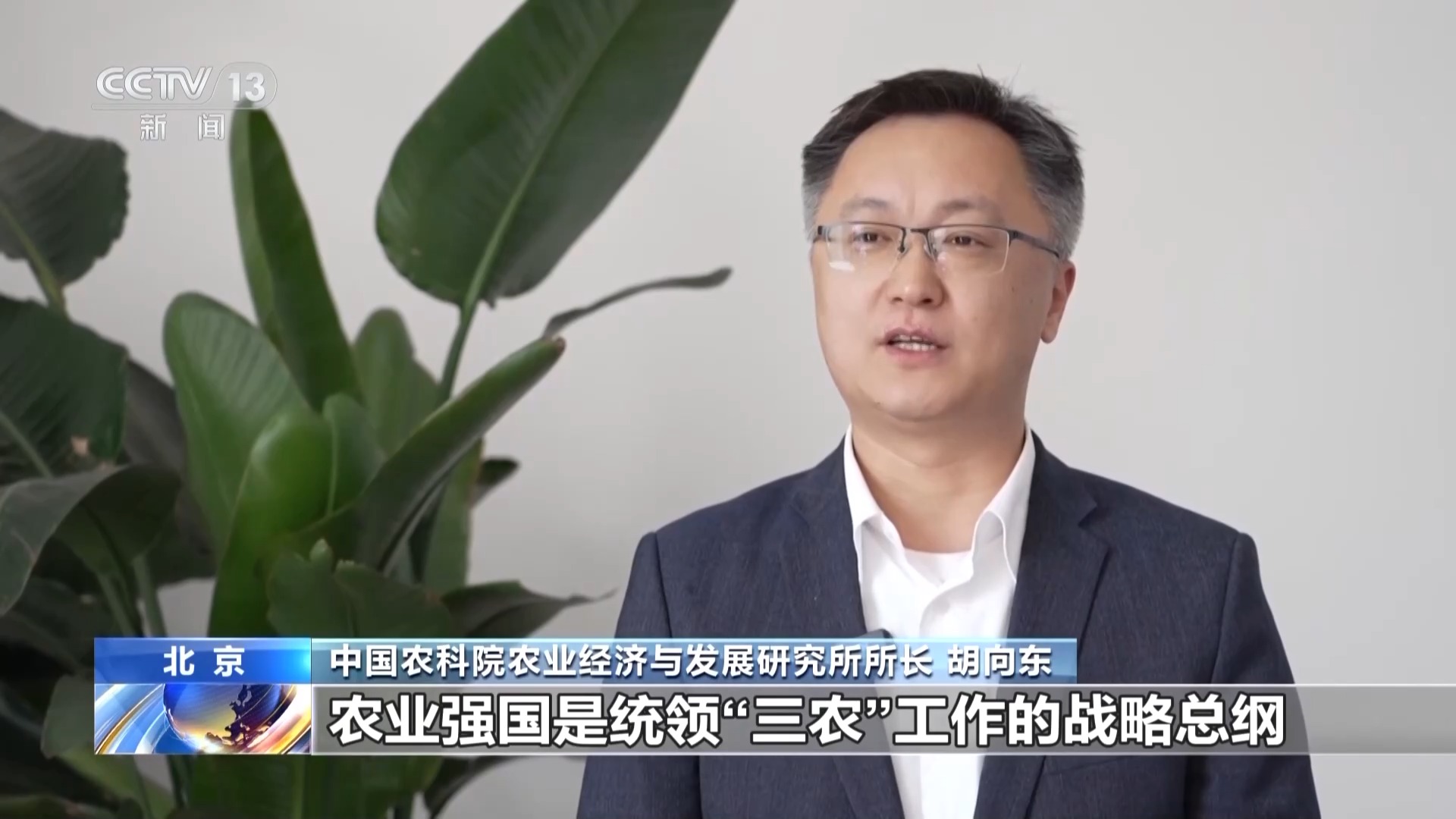 **农科院农业经济与发展研究所所长 胡向东:农业强国是统领“三农”工作的战略总纲,乡村振兴是总抓手,农业农村现代化是总目标。这样大家能更了解我国对“三农”工作这三个方面的布局,知道它们的区别和联系,这是最重要的一个亮点。