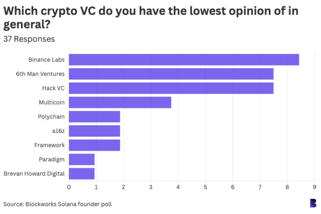 Lightspeed 发起了一项匿名调查,并将其发放给 Solana 的创始人、重度使用者等,旨在真实了解他们对其他生态系统、风险投资公司、初创企业等的看法。