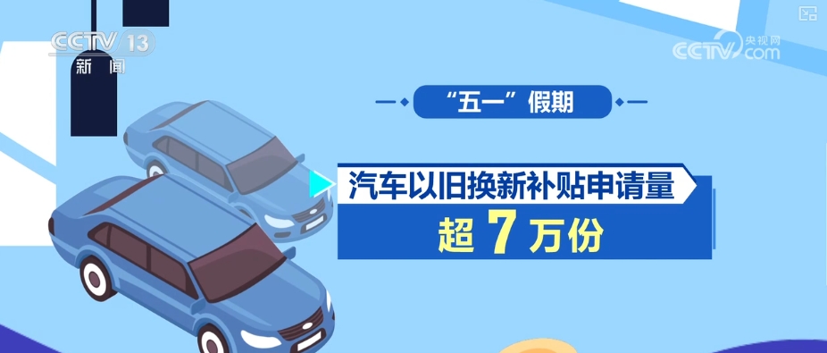“五一”假期,汽车以旧换新补贴申请量超7万份;消费者购买12大类家电以旧换新产品442万台,购买手机、平板、智能手表(手环购新补贴产品294万件,电动自行车售旧、购新均超30万辆。