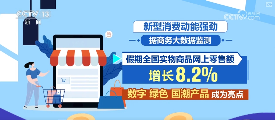 新型消费动能强劲。据商务大数据监测,假期**实物商品网上零售额增长8.2%,数字、绿色、国潮产品成为亮点。数字产品线上销售规模持续增长,其中,智能家居产品增长24.1%。绿色健康理念带动有机食品线上销售额增长超七成,国风国潮推动**监测平台上新中式糕点、国潮创意礼品增长66.2%和35.2%。