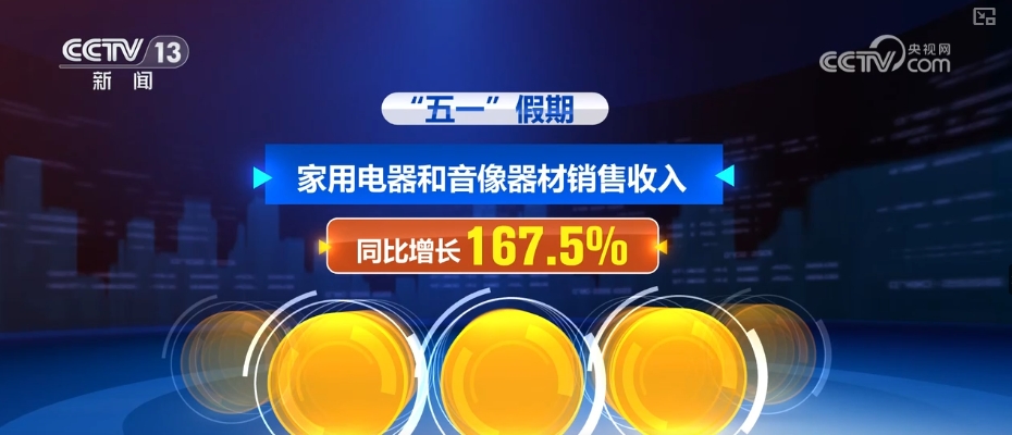 在以旧换新政策带动下,“五一”假期,家用电器和音像器材销售收入同比增长167.5%。智能手机等消费电子产品纳入购新补贴范围,通信器材销售收入同比增长118%,家具销售收入同比增长1.7倍。