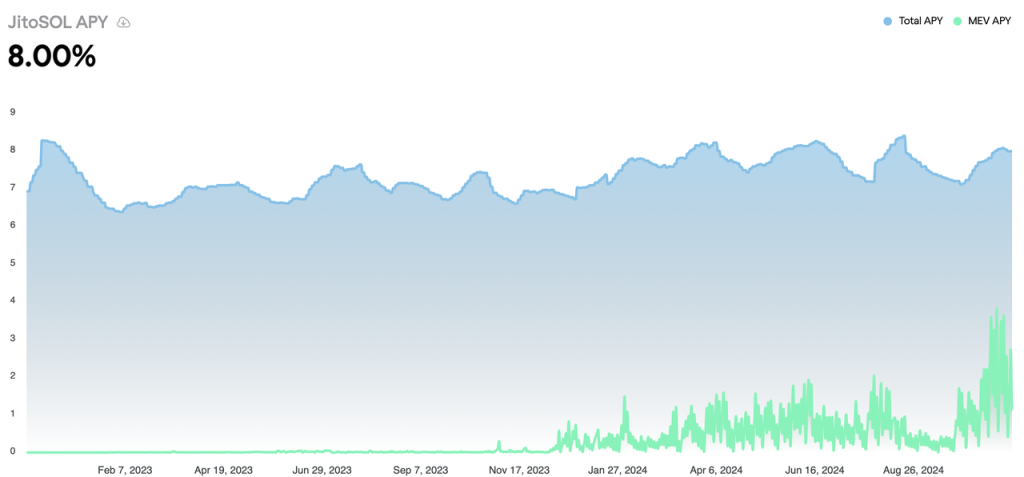 SOL liquid staking(以 JitoSOL 为例)APY 的总收益和 MEV 收益来源登录后复制