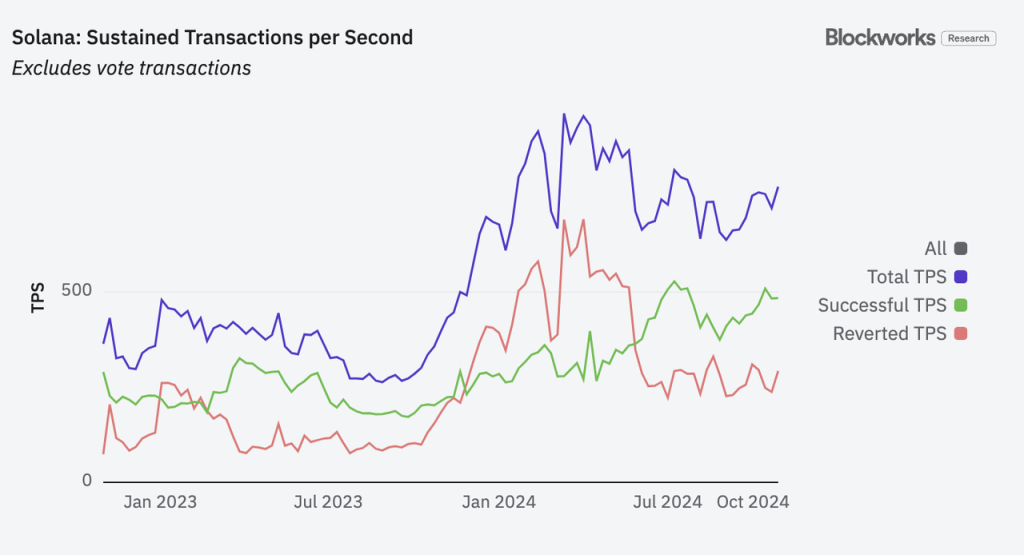 Solana 网络成功和失败的 TPS 来源:Blockworks登录后复制