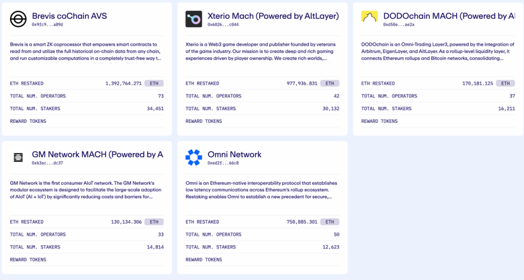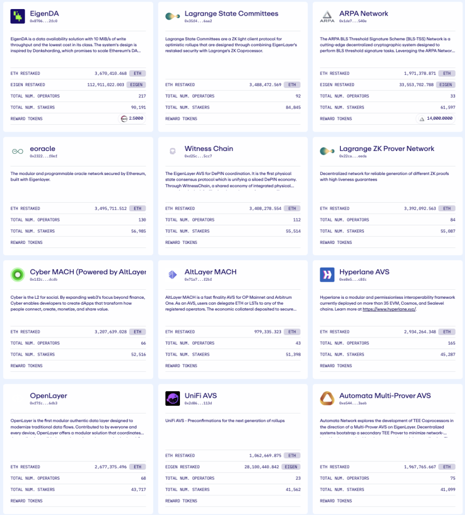 目前采用 Eigenlayer AVS 的协议 来源:Eigenlayer 官网登录后复制