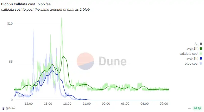 如果 Rollup 使用常规 calldata 而不是 blob,将需要支付更高费用。