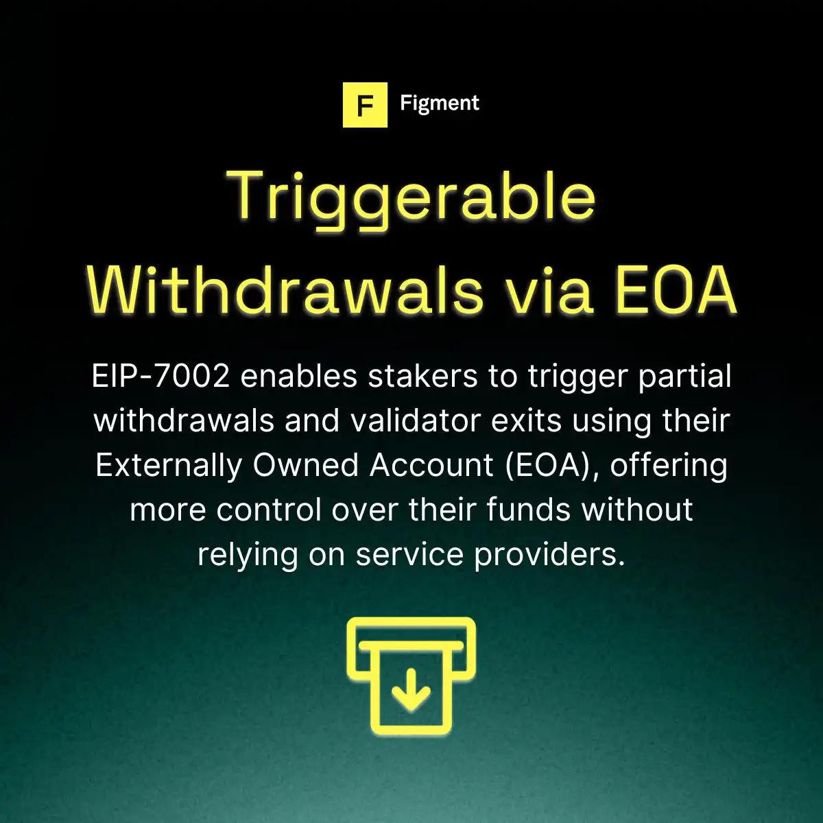 该提案允许智能合约触发验证者的提款操作。目前,只有验证者可以通过自己的密钥进行提款。通过这项变化,退出操作可以直接由执行层管理。