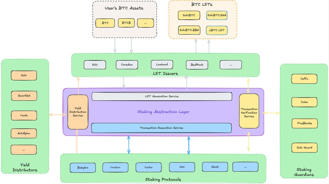 手握**大的流动性与市场渗透率,Solv 率先牵头提出了 Staking Abstraction Layer(SAL)质押抽象层的新叙事,旨在聚合全链分散的 BTC 流动性,提供一个可扩展且透明的统一解决方案。