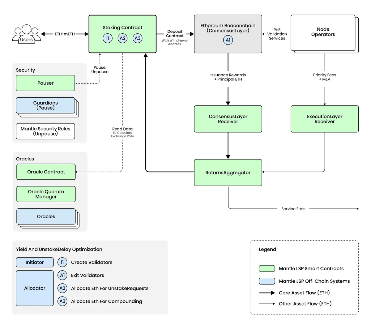 而在风险管控上,mETH 的核心智能合约和链下服务是非托管的,因此其风险趋小化。此外还采用以太坊上海升级之后的设计,重视 ETH 的完整性,L1 上的 mETH 不会增加其他 POS **和链的复杂性。这也为后续的各类集成,打开了方便之门。