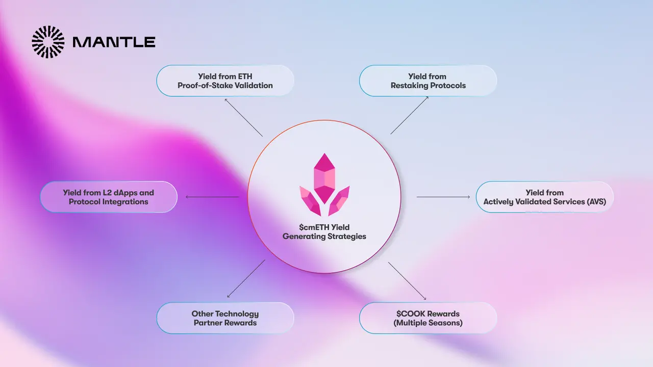 mETH 协议使用户能够从 Mantle 上的资本效率、便利性和广泛的用例中受益。不过在 DeFi 质押时会锁定,**了部分效率。再质押则有利于将资本效率更大化。继 mETH 之后,再质押协议 cmETH 也应运而生。