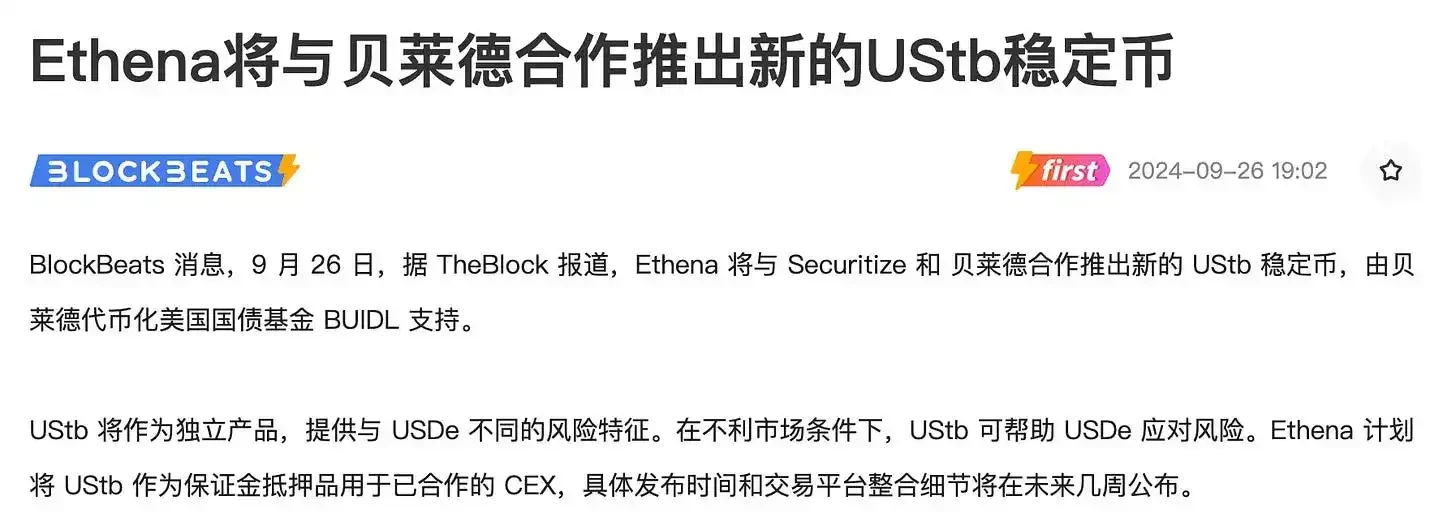 而 $ENA 的竞争力在于:「这个周期出来的新型稳定币」和「与贝莱德合作推出新的 UStb 稳定币」。这个合作形式的影响力要比那些参与贝莱德 Buidl 基金的项目大很多,深度合作是**的催化剂。$ENA 最近的空投和解锁应该会给到我们入场的机会。