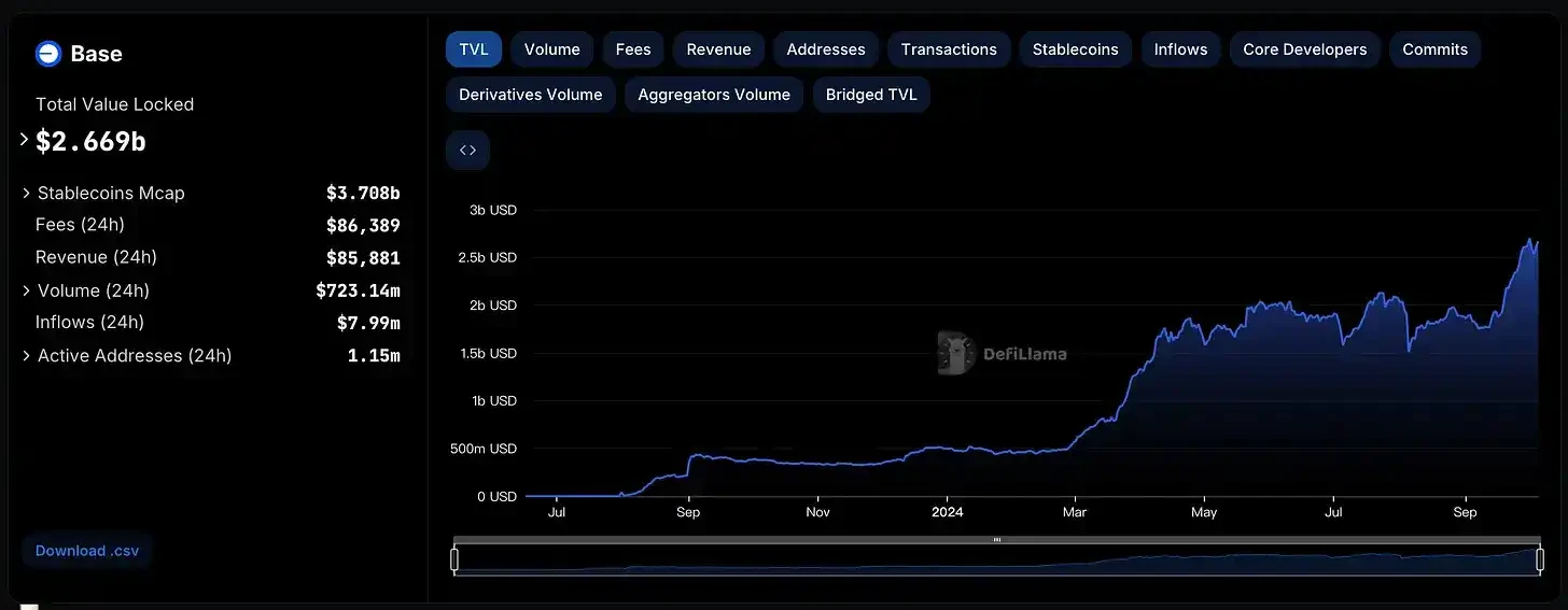 这里我想单独提一下以太坊 Layer2 Basechain。Base 最近表现很好,TVL 在 9 月涨了很多,基本面的增长会带来新的财富机会。这里我们需要明确 Coinbase 做 Basechain 的需求:Base 能够拓展 Coinbase 在加密行业的影响力,还能够为 Coinbasse 带来排序器收入。Base 好,Coinbase 就会受益,那么 Coinbase 就**有动力去推动 Base 生态的持续增长(之前拉盘 $AERO 也是这个道理)。