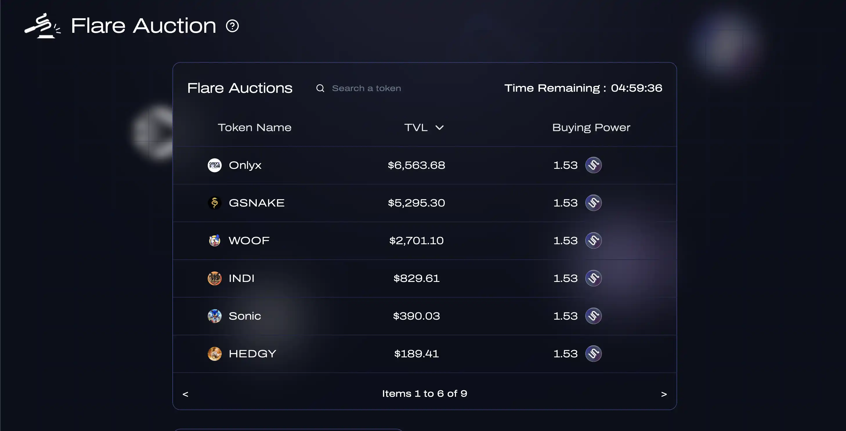 Flare 拍卖是 SilverSwap 的回购机制,每 12 小时为一个周期。在每个周期中,平台会将总交易手续费的 4.25% 累积成一个资金池。用户可以使用 AG **竞标,指定该资金池用于回购某个特定**。周期结束时,出价**的用户的指定**将被回购,所使用的 AG **将被销毁。这种机制为项目方提供了一个利用手中 AG **支持其**价格的**途径,同时通过销毁 AG **实现通缩。