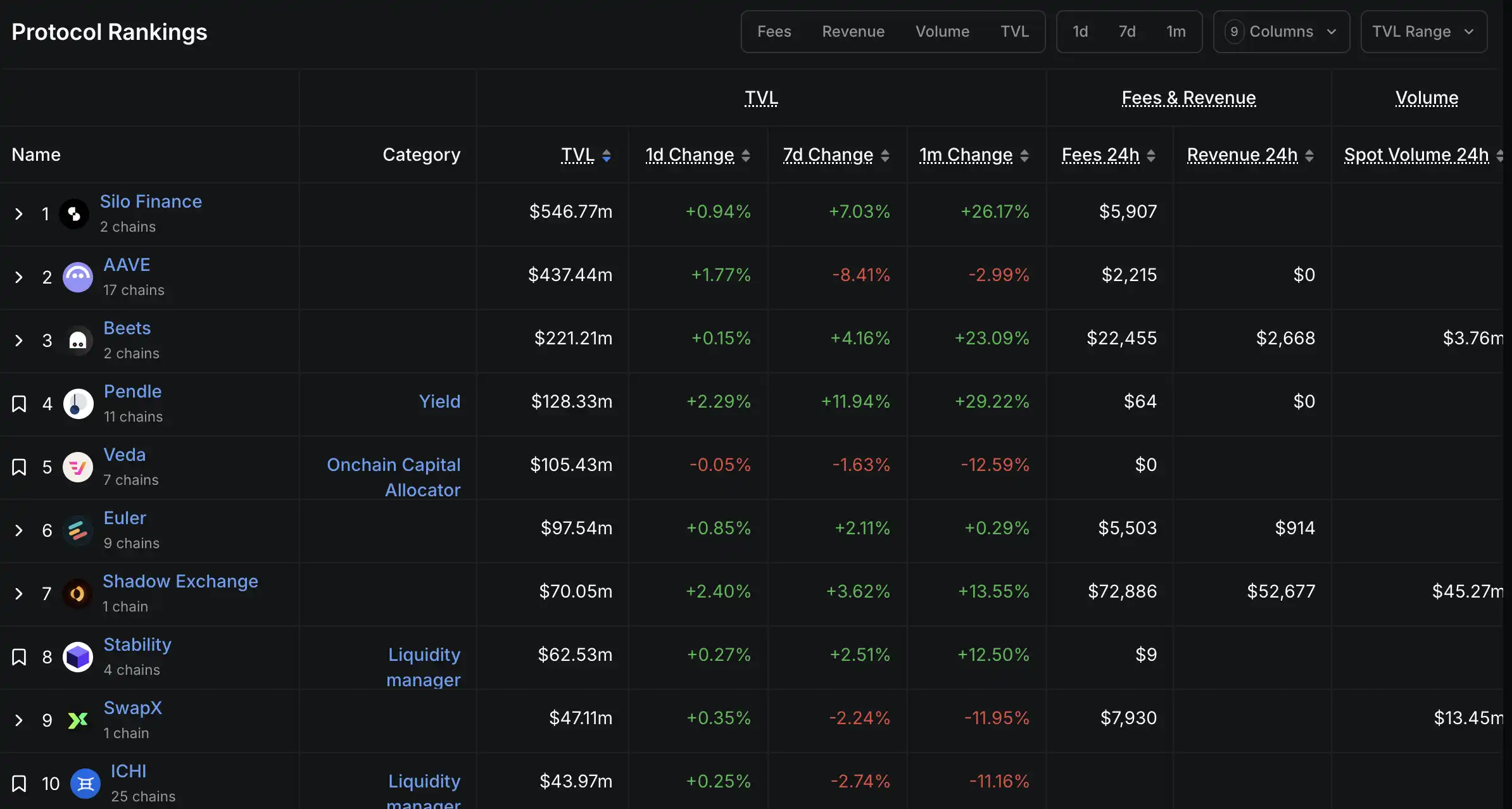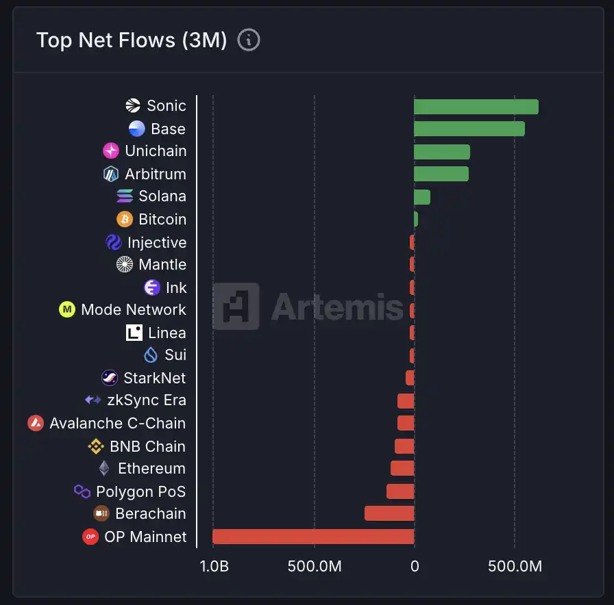 三个月前笔者曾撰写过一篇 Season1 时赚取积分的指南,其中提到了包括 Silo Finance、Ring 等主流平台的收益策略,当时丰富的 DeFi 生态已经让其 TVL 在一个月内增长近 5 倍。而三个月后 Sonic 的 TVL 再次增长了近 3 倍,TVL 从 8 亿美元一跃增长至 22 亿美元资金,近三个月全链净流入量**。