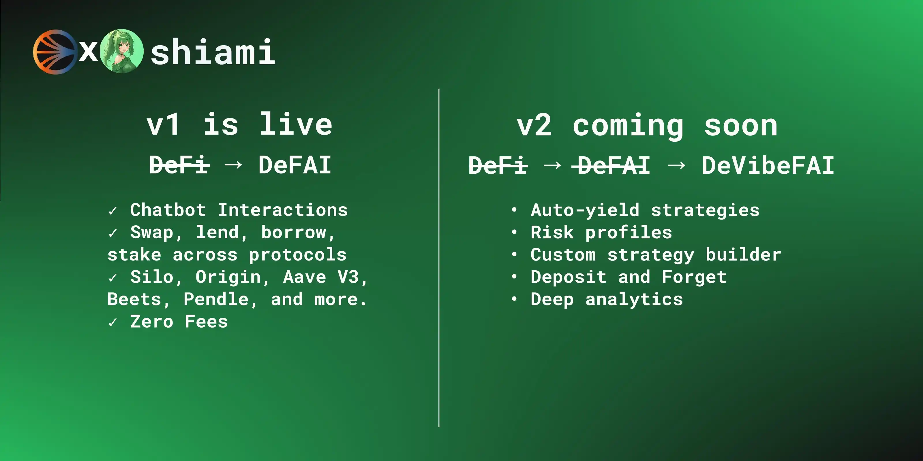在四月初结束的 @SonicLabs和@DoraHacks 联办的 DeFAI 黑客马拉松中获得了第二名,现已支持 Silo Finance、Aave V3、Beets.fi、Pendle Finance、Shadow 等主流 DEX 以及 Angles, Beets, Beefy 等 Sonic 原生的质押平台。在接下来的 V2 版本特别提出了一个新的概念,将 DeFAI 晋升至 DeVibeFAI,「Vibe」一词在最近 AI Agent 的热潮中**常见,Vibe Code 意指无需编程基础仅通过自然语言进行编程的概念。