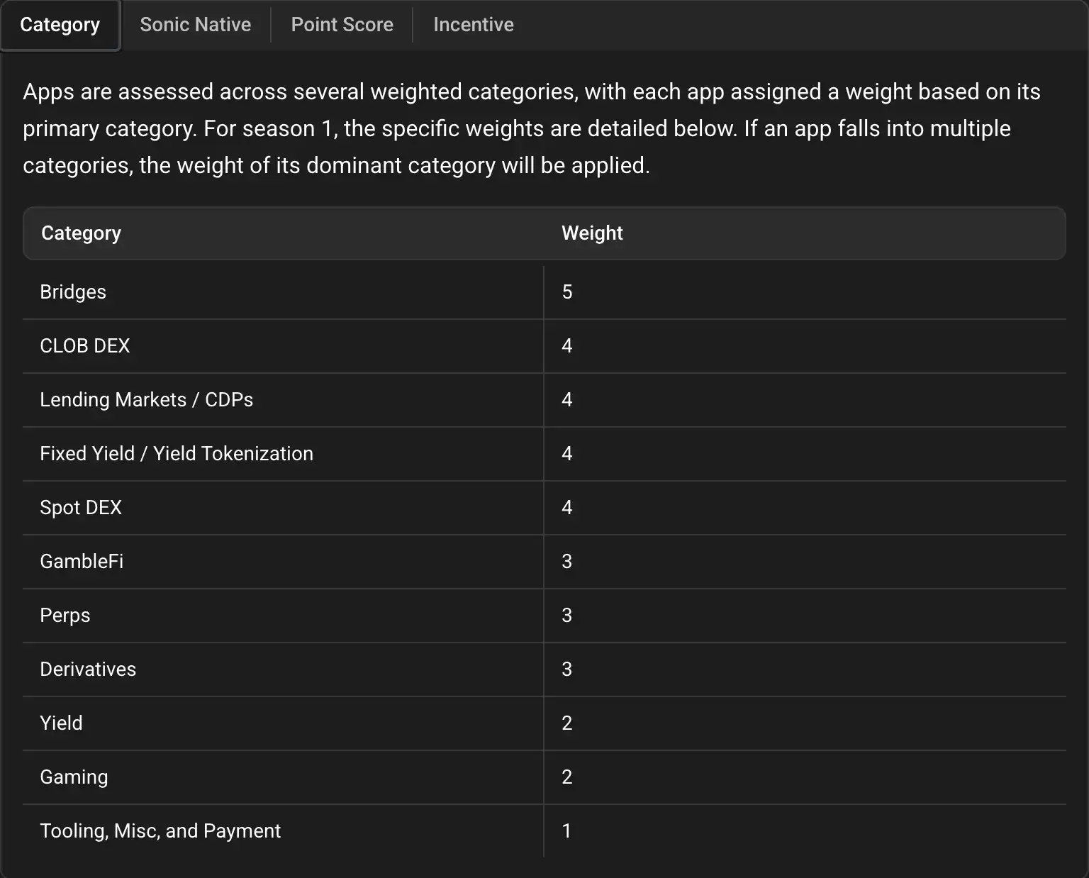 「A」体现出了 Sonic 想要激励项目方输出更多类型的「原生」项目,虽然现在具体的种类细则还未公布,但从此前 Sonic 的**季对项目种类的分配比例来看,最占优势的是跨链桥,其次是 DEX 交易相关的功能。