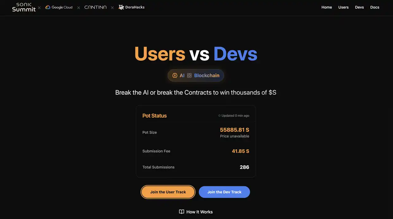 在举行 Sonic Summit 期间 Sonic 还举办了一个有意思的小游戏,不会编程的用户「Users」可以通过「诱骗 AI」参与,参与者需通过设计巧妙的提示,诱导由 Google Gemini AI 守护的系统泄露一组私钥。每次提交提示需支付**数量的 S **,费用逐渐增加并计入奖金池。成功提取私钥并通过验证的用户将赢得奖金池。