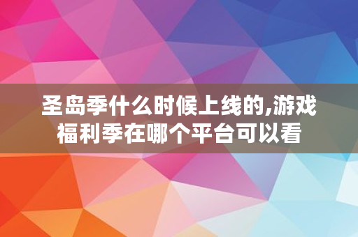 圣岛季什么时候上线的,游戏福利季在哪个平台可以看