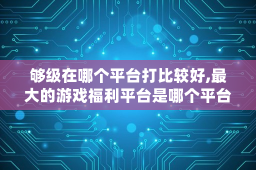 够级在哪个平台打比较好,最大的游戏福利平台是哪个平台