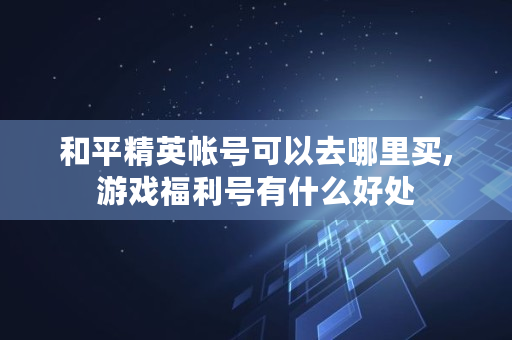 和平精英帐号可以去哪里买,游戏福利号有什么好处