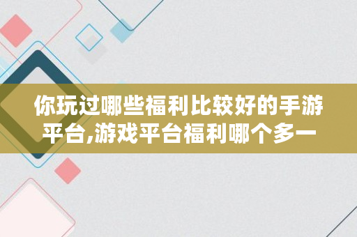 你玩过哪些福利比较好的手游平台,游戏平台福利哪个多一些啊