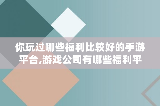 你玩过哪些福利比较好的手游平台,游戏公司有哪些福利平台可以做