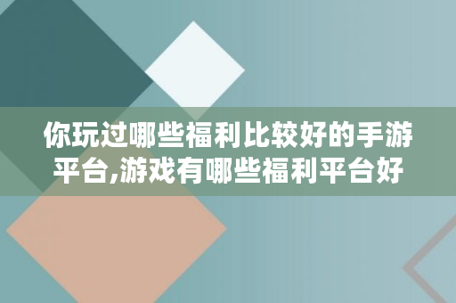 你玩过哪些福利比较好的手游平台,游戏有哪些福利平台好玩的