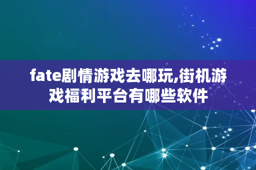 fate剧情游戏去哪玩,街机游戏福利平台有哪些软件