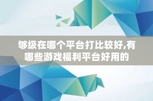 够级在哪个平台打比较好,有哪些游戏福利平台好用的