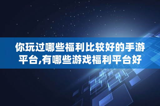 你玩过哪些福利比较好的手游平台,有哪些游戏福利平台好做的