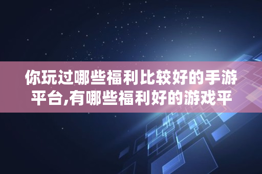 你玩过哪些福利比较好的手游平台,有哪些福利好的游戏平台推荐
