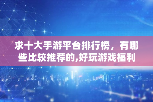 求十大手游平台排行榜,有哪些比较推荐的,好玩游戏福利平台有哪些软件