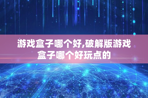 以上内容就是关于破解版游戏盒子哪个好玩点的问题**解答了,如果对你有所帮助的话,请收藏关注本站,这里将更新更多关于破解版游戏盒子哪个好玩点的内容。