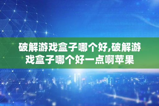 破解游戏盒子哪个好,破解游戏盒子哪个好一点啊苹果