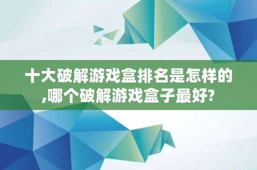 十大破解游戏盒排名是怎样的,哪个破解游戏盒子最好?