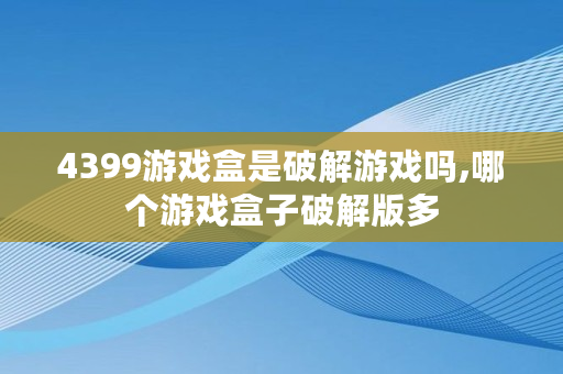 4399游戏盒是破解游戏吗,哪个游戏盒子破解版多