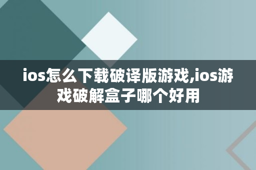 ios怎么下载破译版游戏,ios游戏破解盒子哪个好用
