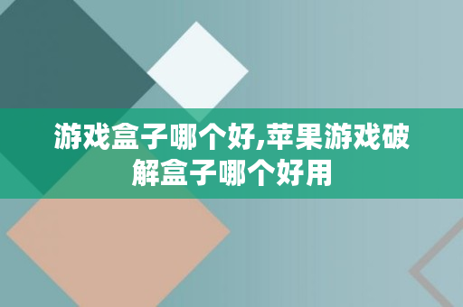 以上内容就是关于苹果游戏破解盒子哪个好的问题**解答了,如果对你有所帮助的话,请收藏关注本站,这里将更新更多关于苹果游戏破解盒子哪个好的内容。