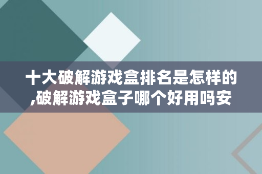 十大破解游戏盒排名是怎样的,破解游戏盒子哪个好用吗安全吗
