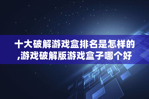 十大破解游戏盒排名是怎样的,游戏破解版游戏盒子哪个好用