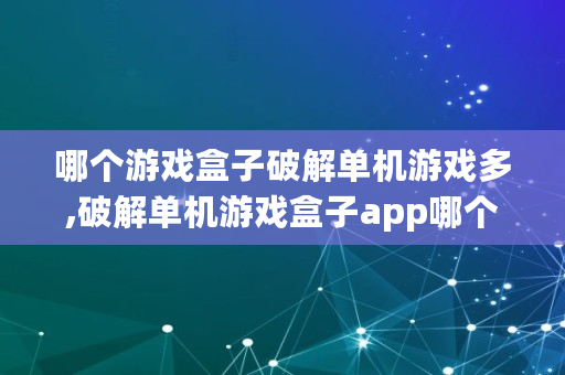 哪个游戏盒子破解单机游戏多,破解单机游戏盒子app哪个好用