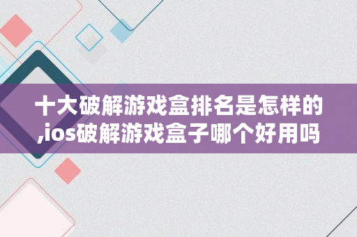 以上内容就是关于ios破解游戏盒子哪个好用吗的问题**解答了,如果对你有所帮助的话,请收藏关注本站,这里将更新更多关于ios破解游戏盒子哪个好用吗的内容。