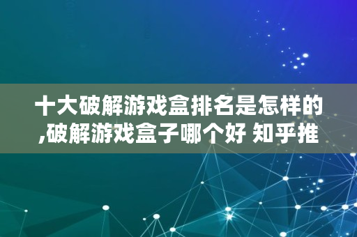 十大破解游戏盒排名是怎样的,破解游戏盒子哪个好 知乎推荐